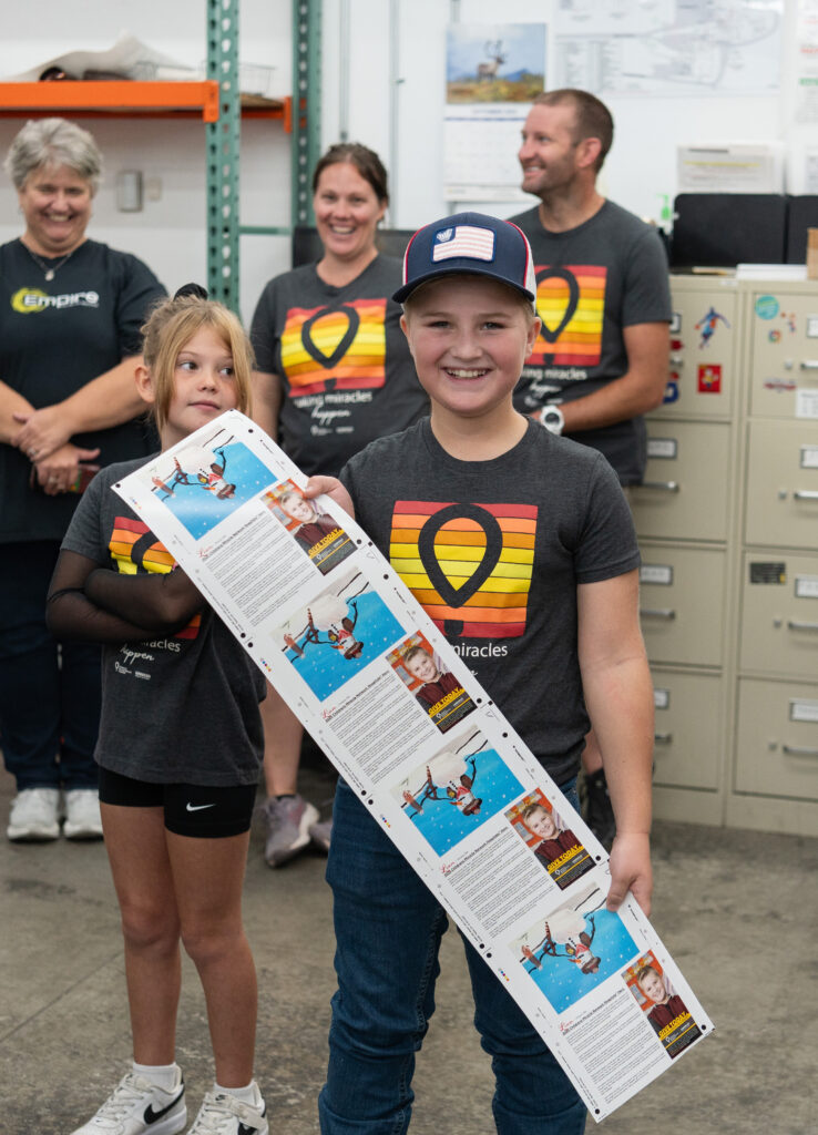 In addition to seeing their holiday cards come to life, Empire Screen Printing made it extra special by giving the CMN Heroes and their families a tour of the entire facility and even printing off pictures and stickers of their favorite things. Each Hero went home with so many memories.