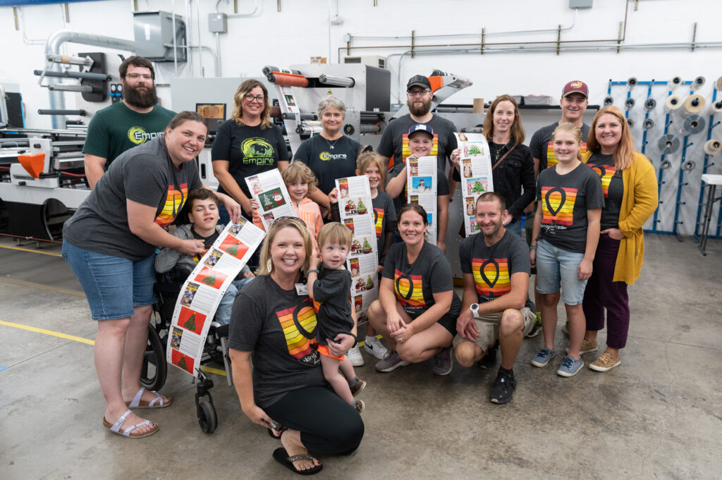 In addition to seeing their holiday cards come to life, Empire Screen Printing made it extra special by giving the CMN Heroes and their families a tour of the entire facility and even printing off pictures and stickers of their favorite things. Each Hero went home with so many memories.